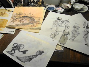 描いているうちに、絵コンテとはちがったものになっていくこともあります。手を動かしながら、考えていくという感じです。