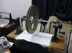 ステインベックよりも古い機械(ムヴィオラ)ペダルを足で踏んで、フィルムを動かします
