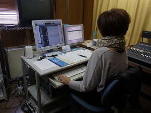 今は音素材をコンピューターに取り込んで加工する。台本は事前に読まない