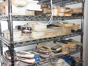 いろんな種類の靴、履物がストックされている