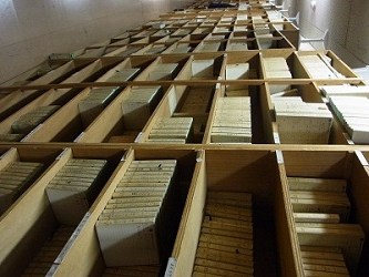 効果マンの仕事は、テープに録音された音にどんなものがあって、それがどこに入っているかを覚えることから始まります。仕事場にあるテープの他に、倉庫にも保管されているので万の単位でテープがあるのではないかとのことです。