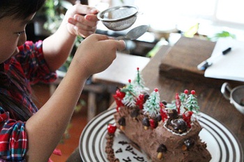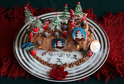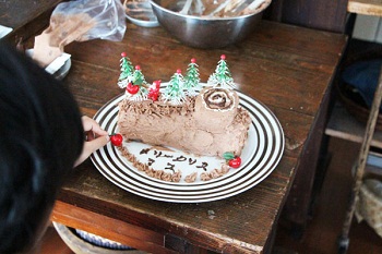映画の中で素敵なクリスマスのディナーが出てきますが、子どもにとってクリスマスで一番食べたいものはやっぱりケーキです。クリスマスのケーキと言えば、「ブッシュ・ド・ノエル」。直訳すれば「クリスマスの切り株」。丸太型のチョコレート味のケーキです。
