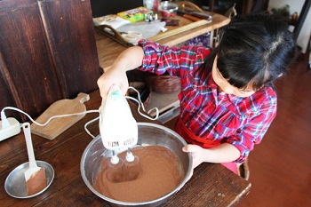 ここからはみーちゃんと一緒に。チョコクリームを泡立てます。角が立つくらいに。