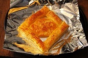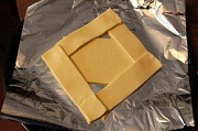 リンゴが焼きあがったら、パイシートを焼きます。アルミホイルをしいて焼き目が少しつく10分くらい。