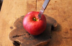 りんごの種類は色々ありますが、小ぶりで赤く、熱を入れるとより美味しくなる紅玉を選びました。