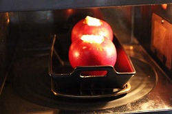 230度で予熱したオーブンに、入れてリンゴを焼きます。20分くらい。