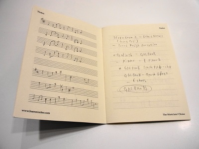 音符を書きとめる五線譜ノートそして音楽の仕事については、「好きなだけではダメだけど、まず好きでなければ出来ない仕事。自分特有の“カラー”を持つことが重要です」と答えてくださいました。石橋さんの場合は和音の使い方に特徴があるとよく言われるそうです。そして、考え続けることが欠かせないとも。演奏者のこと、観客のこと、いい仕事ができているか、曲の発想が浮かばない時も決してあきらめず考え続ける。それこそが、プロの仕事として続けていくための秘訣なのだと教えてくださいました。