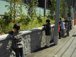 いよいよ通学路に出発。みんな草やお花の写真に夢中