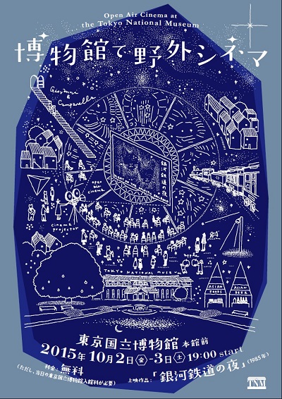 東京国立博物館は、2015年10月2日(金)、3日(土)に移動映画館キノ・イグルーと共催で、野外シネマを開催します。昨年に続く第2回目の上映作品は、杉井ギサブロー監督作「銀河鉄道の夜」です。来年生誕120周年を迎える宮沢賢治は、東京国立博物館を愛し、足しげく通ったことが短歌や手紙に残されています。