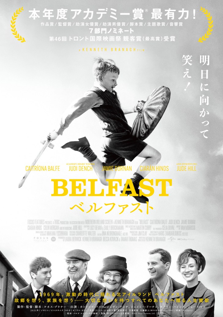 1969年、北アイルランド・ベルファスト。9歳のバディは家族と友達に囲まれ、映画や音楽を楽しみ、充実した毎日を過ごしていた。しかしその年の8月15日、バディの穏やかな世界は突然、プロテスタントの武装集団によるカトリック住民への攻撃によって破られる。住民すべてが顔なじみで、まるで一つの家族のようだったベルファストは、この日を境に分断されていく。暴力と隣り合わせの日々のなか、バディと家族たちは故郷を離れるか否かの決断に迫られる――。監督ケネス・ブラナーが、自身の幼少期を投影した自伝的作品で、アカデミー賞オリジナル脚本賞を受賞。※冒頭激しい暴動シーンがあります。